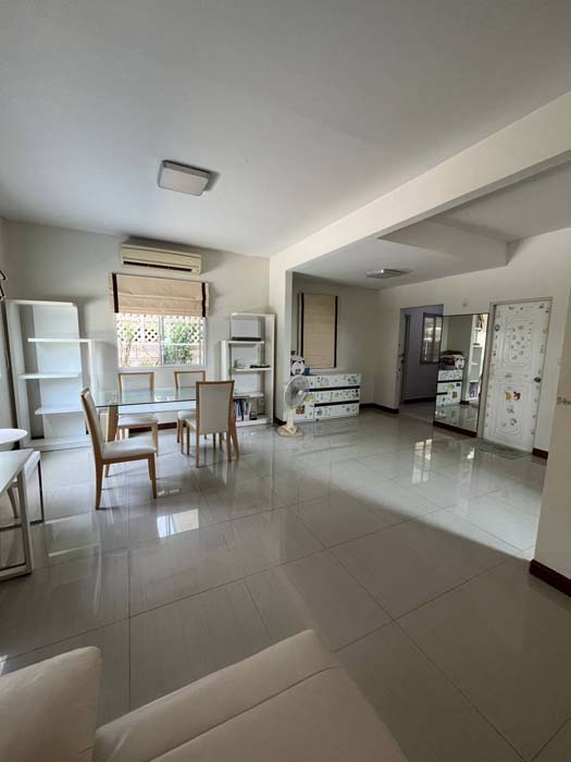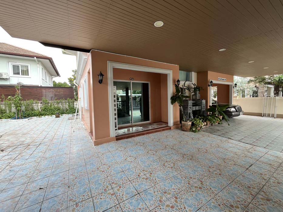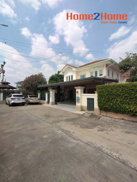 จุดเด่น พื้นที่กว้างบรรยากาศดีร่มรื่นสงบ สภาพบ้านเรียบร้อย ต่อเติมหลังคาหน้าบ้านโรงรถใหญ่ถึงประตูหน้าบ้านสวยงาม
